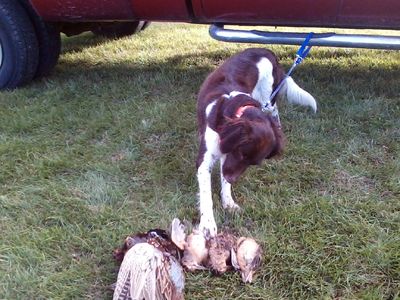 Only pic from first two days, no decent video. 15 chucker 5? pheasant and a lot more shooting. Chucker in a tree, patiently waiting for it to fly!